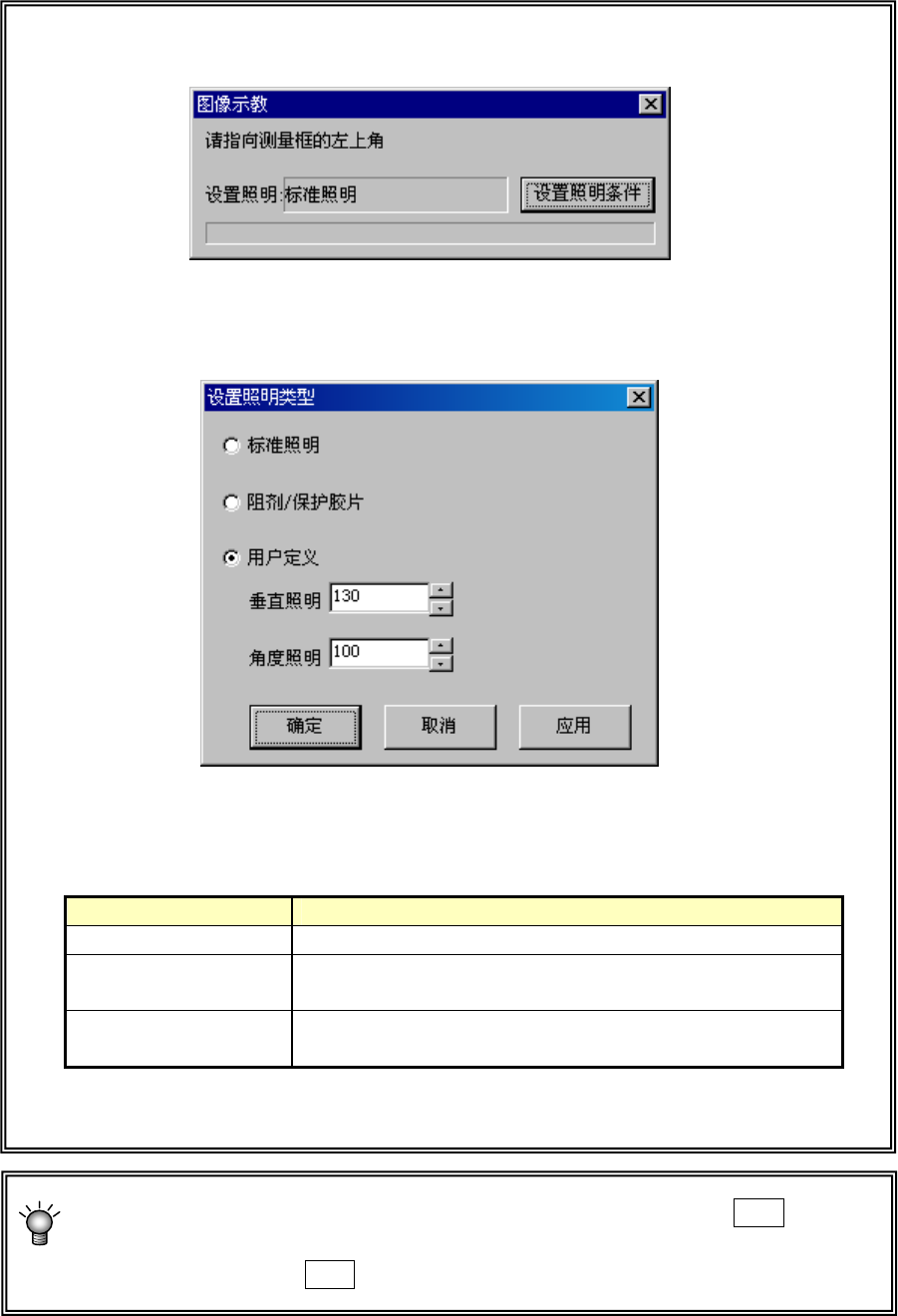 ※ 设置照明条件,选择用户定义时,一般设置在50~200之间。设置50 以下时,