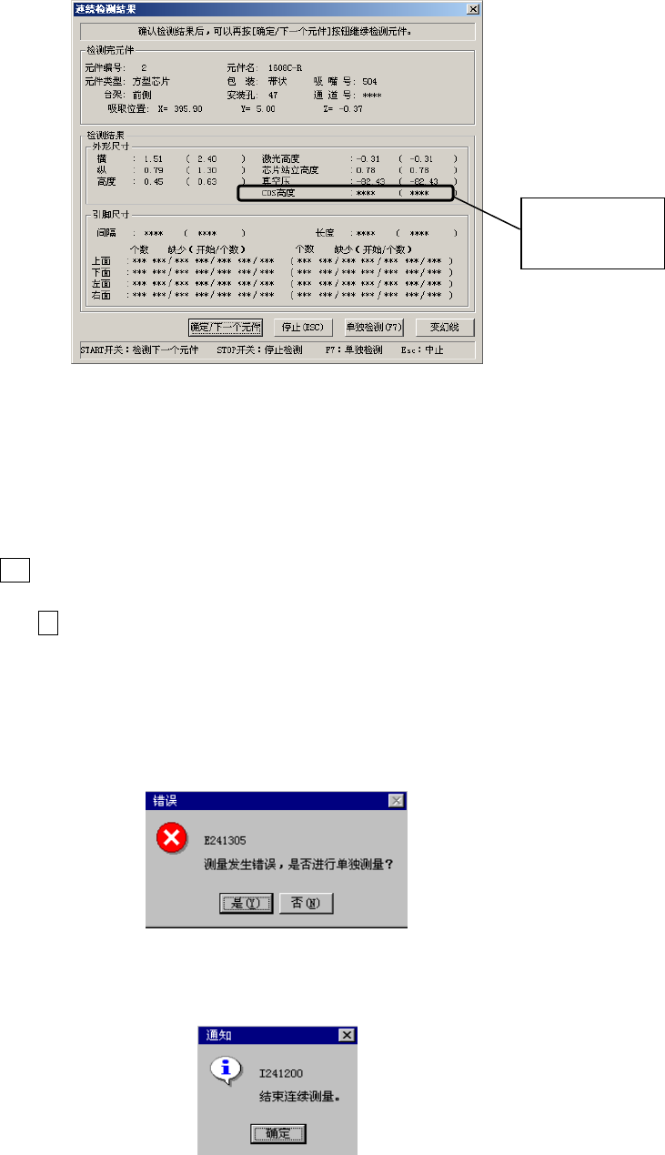 因某种原因在检测中发生错误时,显示如下信息。选择“是”,可转入单独检测模式。