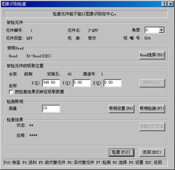 ● 照明检测(F7):可自动测出检测识别元件所需的最佳照明条件。