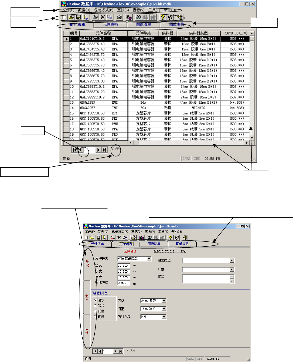进行清单与表格的切换,元件数据与图像数据的切换。