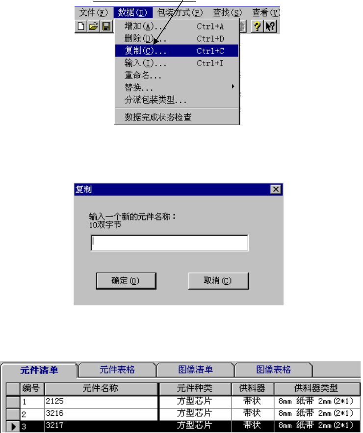 ① 选择要复制的元件名后,单击“数据”/“复制”。