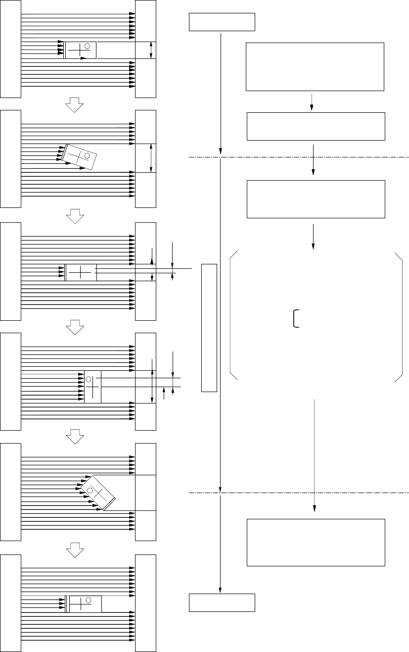 第 1 部 基本编 第 1 章 设备概要 1-42 2) FMLA 时(仅 KE-2080R) A D d X B C d Y E (-)旋转 (预旋转) (+) 旋转 (+) 旋转 (+) 旋转 校正 ⑥ ⑤ ④ ③ ② ① 吸取元 件 预旋转 驱动 Z 轴,吸取元件, 把元件对准激光校正高度。 (吸嘴中心) (元件中心) 激光校 正 测量 校 正 贴片 然后向(-)方向旋转 θ 轴 (预旋转) 向 (+) 方向旋转 θ 轴, 开始 …