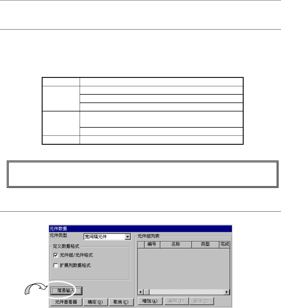 用简易输入法可输入一般性的元件数据,但复杂的元件定义,需在详细输入画面(参见6-2-1章)中进