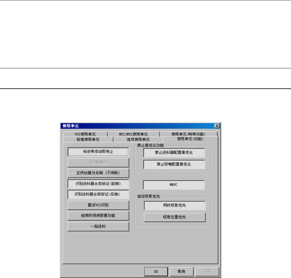 选择机器设置的使用单元,单击使用单元(功能)标签后,显示下图。MNVC 按钮为凹陷的,MNVC 功能有