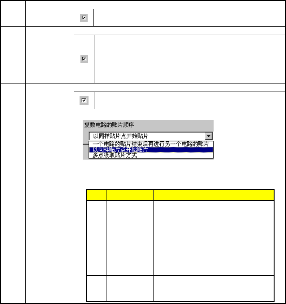 表 7-2-3-2 多电路的贴片顺序的选项及概要