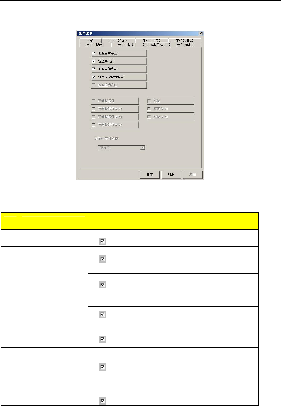 表 7-2-6 设置生产中的检查选项的细节和内容