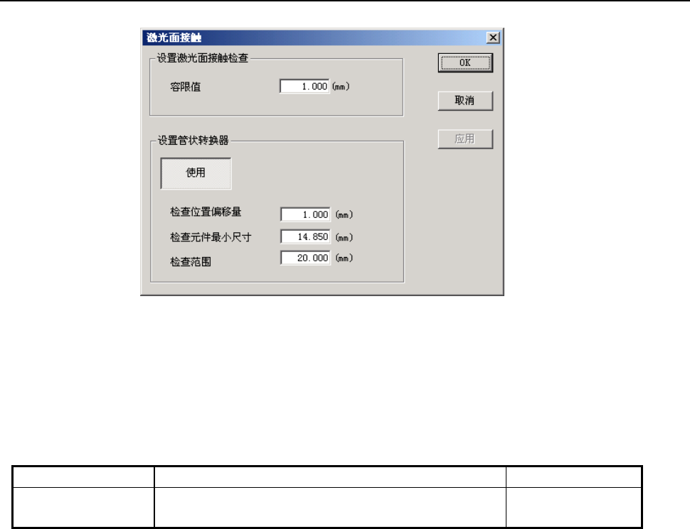 选择激光面接触检查后,显示图 8-5-18-1 的激光面接触检查设置对话框。