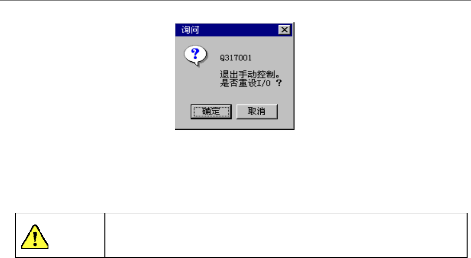 第 2 部 功能详细编 第 9 章 手动控制 9-3 9-2-2 退出手动控制 如果从菜单栏中选择“文件” /“退出” ,或选 择命令按钮的“退出” ,则显示退出的询问画面。 图 9-2-2 安全方向设置的确认画面 “确定”: 执行I/O安全方向设置后退出。例如, Head带有吸嘴时, 将吸嘴放回ATC后,退出手动 控制画面。 “取消”:返回手动控制画面。 选择“确定”后,则轴会移动并开始各 I/O 的安全方向设置。在选择“确定” 前,…
