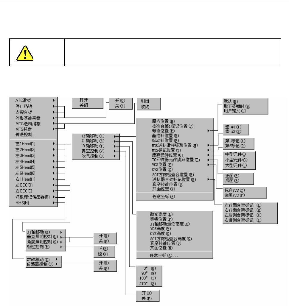 从弹出菜单中选择项目后,轴将立即移动。在选择前,请务必确认无人在进行