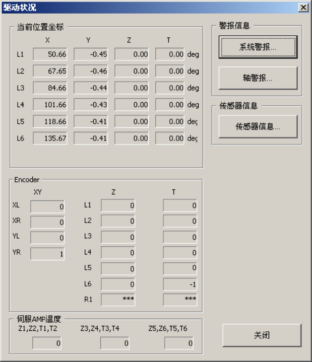 各轴的马达端检测器(Encoder)或机械端检测器(线性位移传感器)可显示现在位置。