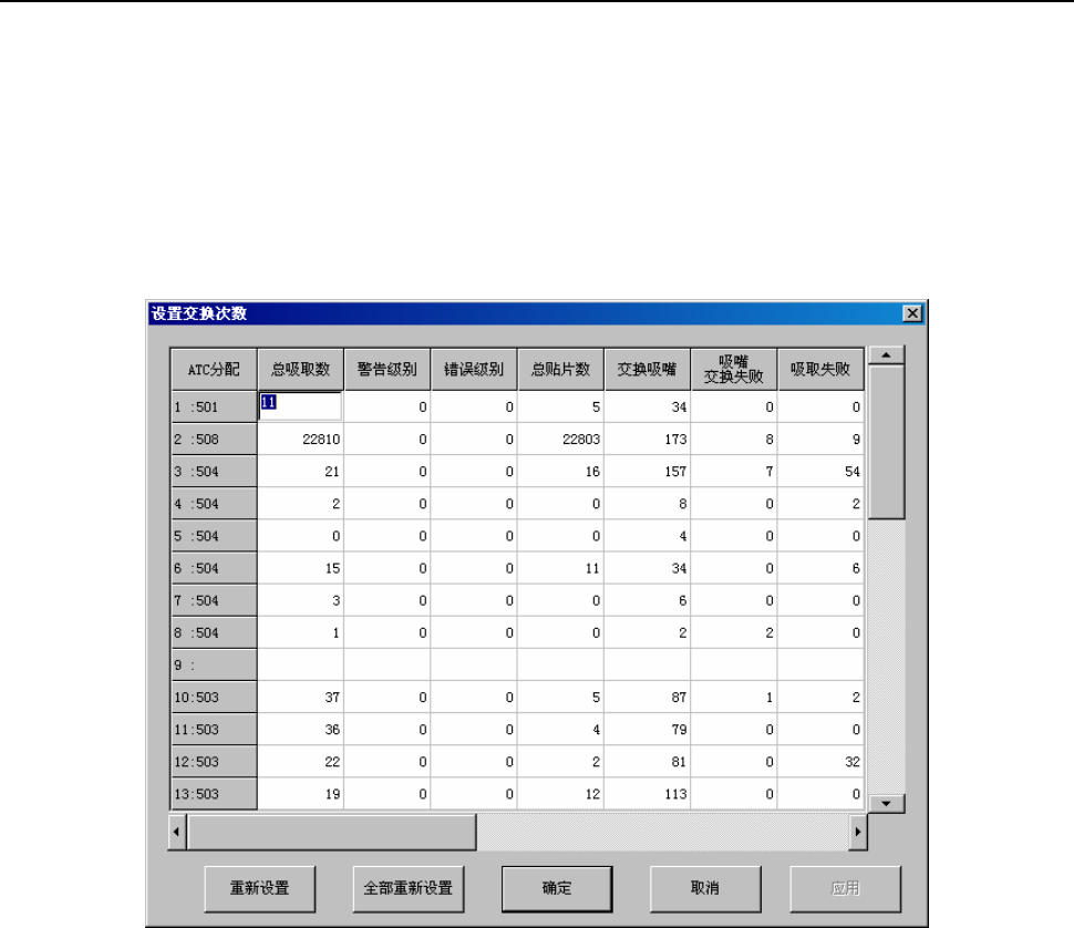从菜单栏中选择“数据”/“设置次数”/“各吸嘴”,则显示图10-3-2-1。
