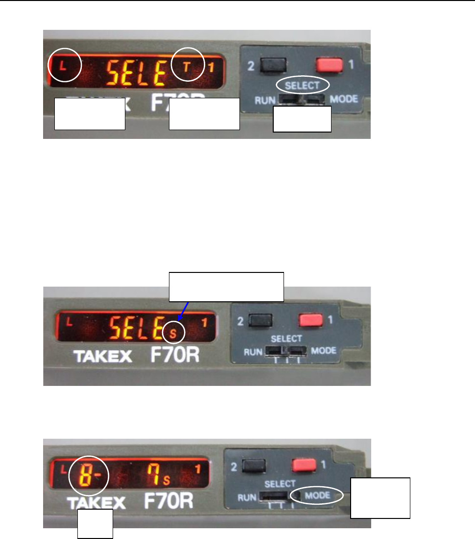 ① 将模式开关由【RUN】扳至【SELECT】。表示部分变为【SELE】。
