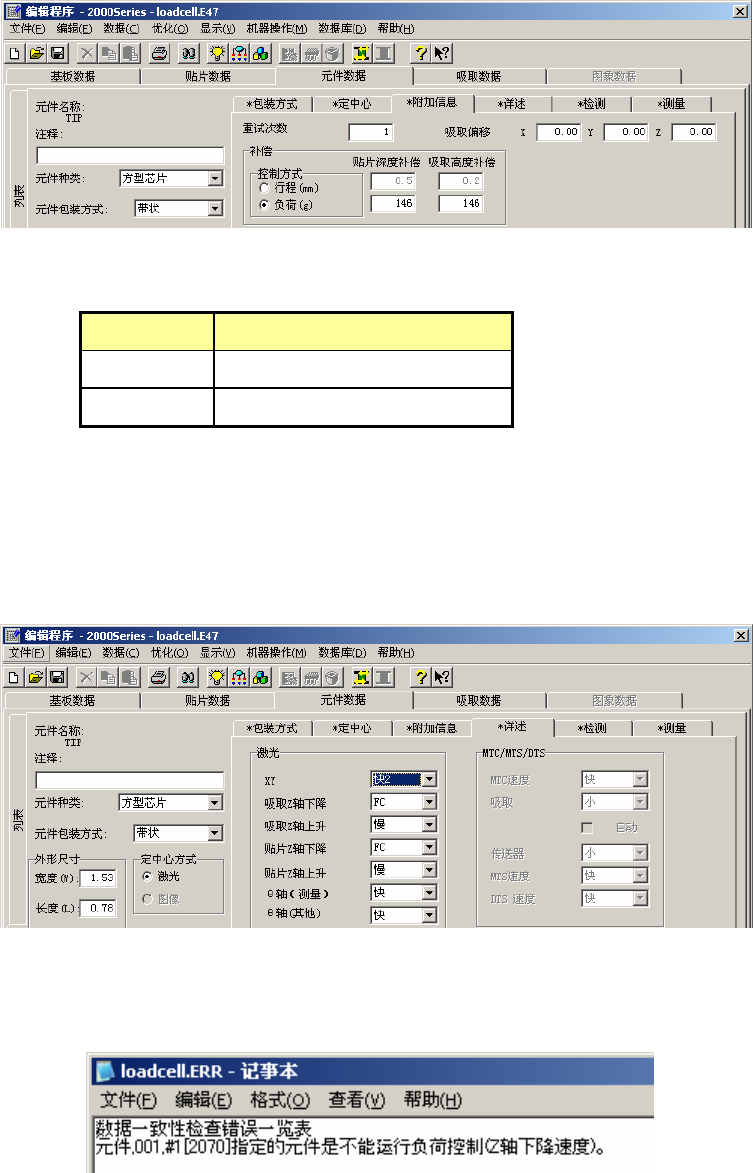 输入负荷后,将根据输入的负荷(g)自动计算出对各个吸嘴的补偿量(mm),对元件的吸取/贴片