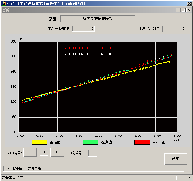 时会暂停生产,以图形显示错误时的负荷测量数据、当前的设置数据、理论值。