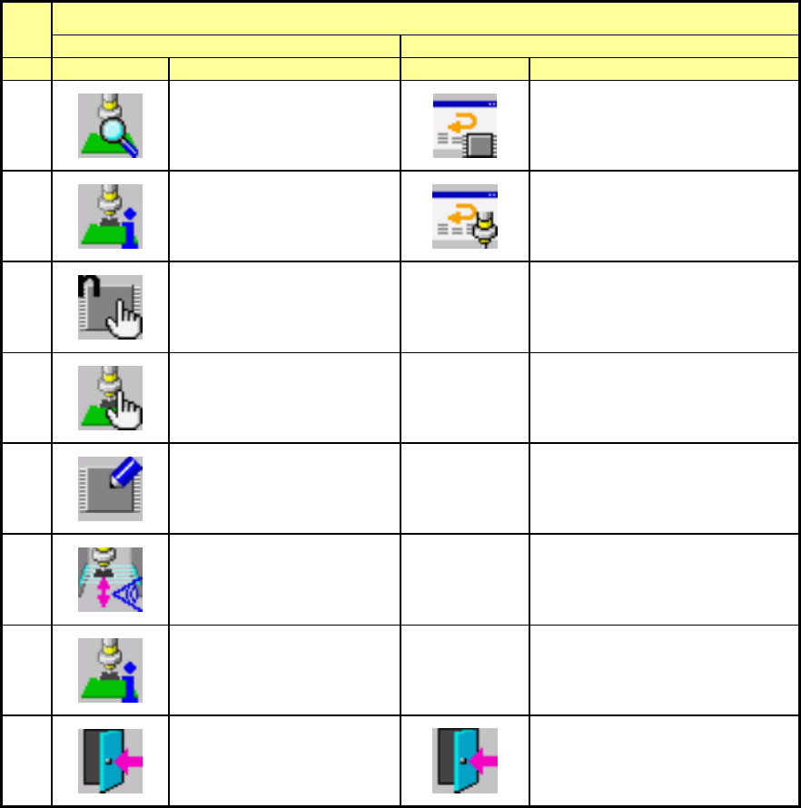 第 1 部 基本编 第 1 章 设备概要 1-75 换页(Ⅲ) 1/2 2/2 No. 图标 名称 图标 名称 1 生产状态 重试一览 未贴片一览 2 生产管理信息(综合) 重试一览 供给设备信息 3 元件数量设定 4 操作选项 5 数据变更 6 激光高度检测 7 生产信息管理 吸取率 8 退出 返回桌面。 退出 返回桌面。