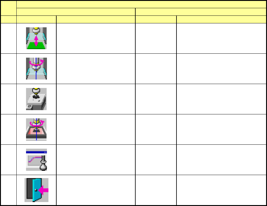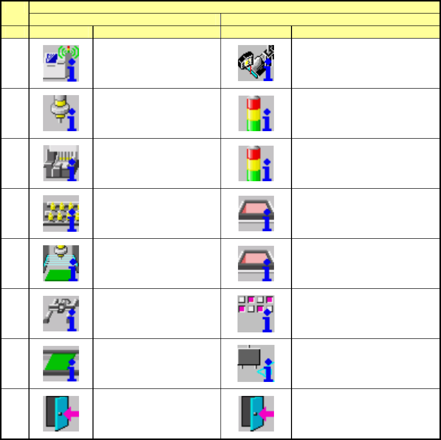 第 1 部 基本编 第 1 章 设备概要 1-79 1-4-2-6 装置运行信息 换页 第一页 第二页 No. 图标 名称 图标 名称 1 机器运行信息 HMS 运行信息 2 各吸嘴运行信息 信号灯运行信息 3 各贴片头运行信息 迷你信号灯控制 4 ATC 运行信息 OCC 运行信息 5 激光/传感器运行信息 VCS 运行信息 6 轴运行信息 非同步运行信息 7 传送运行信息 SOT 运行信息 8 退出 返回桌面。 退出 返回桌面。