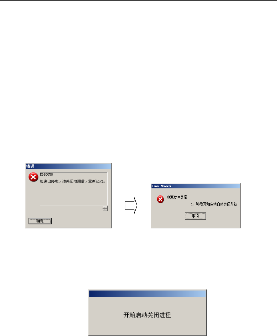 图 2-3-3-2-1 检测到停电时的画面(1) 图 2-3-3-2-2 检测到停电时的画面(2)