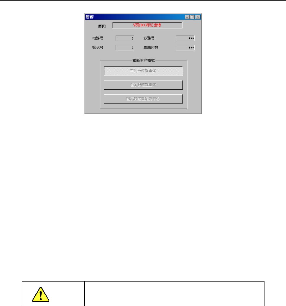 发生BOC标记、基准领域标记识别错误时,会显示如下画面,进入暂停状态。