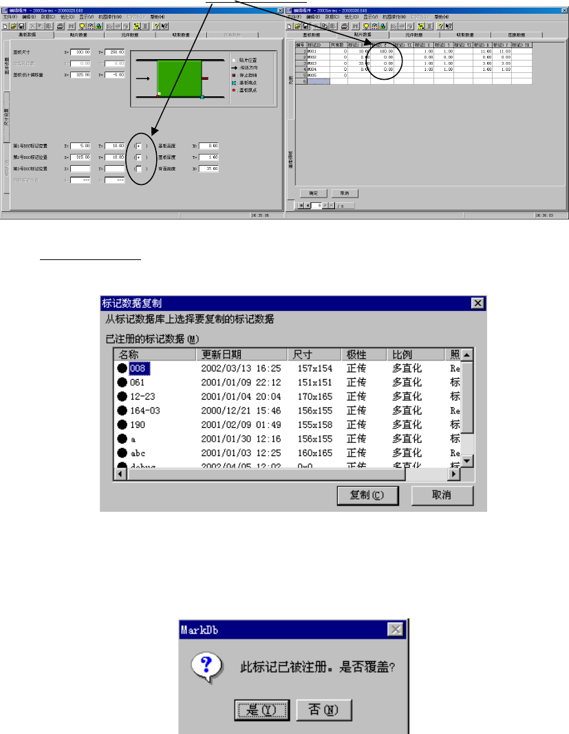 将标记数据库中所登录的标记数据作为BOC标记或区域基准标记复制到数据中的功能。