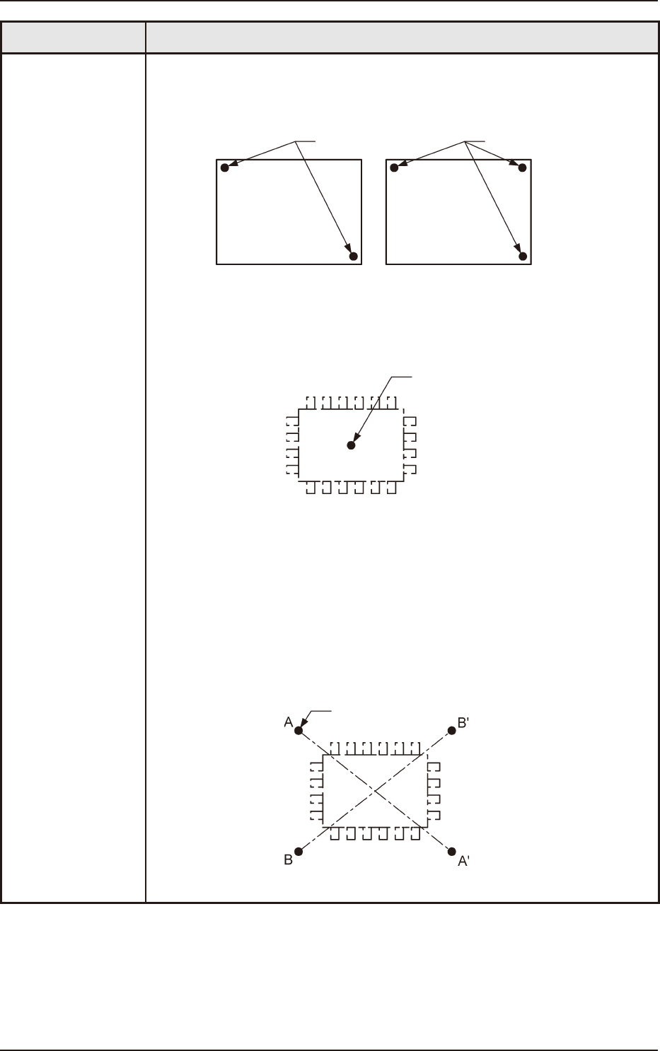 1OM-1752 4-3 1304-001 项 目 内 容 线路板全体补正用示例 为了提高识别精度,在 2 点识别时,请将线路板识别标记配置到对角位置。 另外, 在 3 点识别时, 请将 2 点配置在对角位置, 余下的 1 点配置在边角附近。 线路板识别标记 线路板识别标记 线路板 线路板 F1D5 元件贴装点补正用示例 1(1 点识别 ) 请在元件贴装点中心或周围附近的任意 1 点上配置线路板识别标记。 建议位置:元件贴装点中心 …