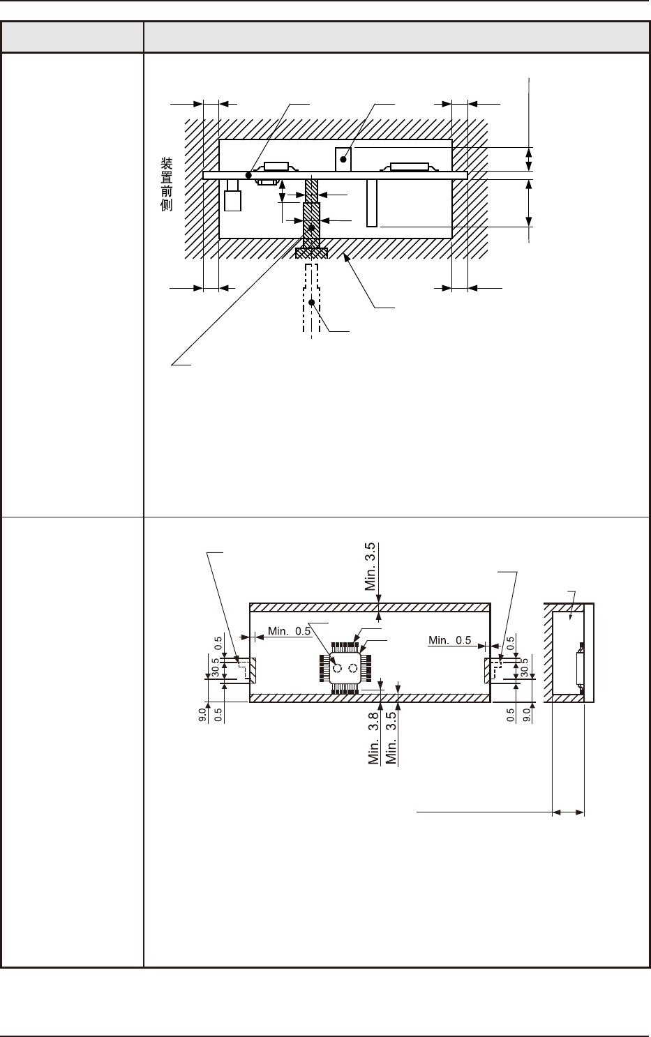 (b)斜线部表示不可以贴装的范围。