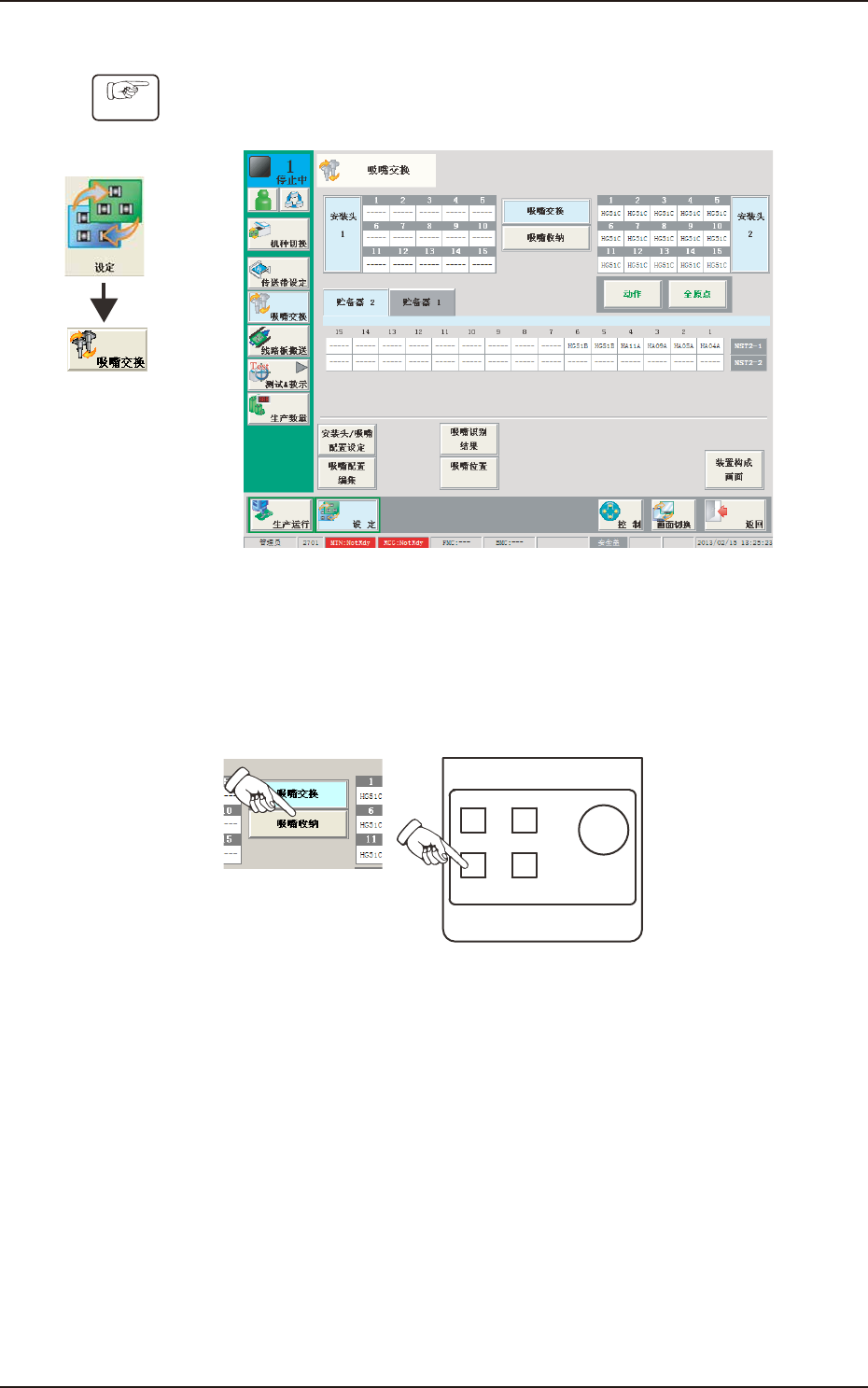 界面中,按下子菜单中的 [ 吸嘴更换 ] 按钮。