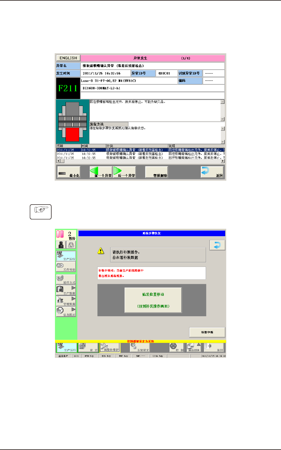 (a) 元件贴装中出现异常时,显示异常界面。请参照异常显示界面内容,