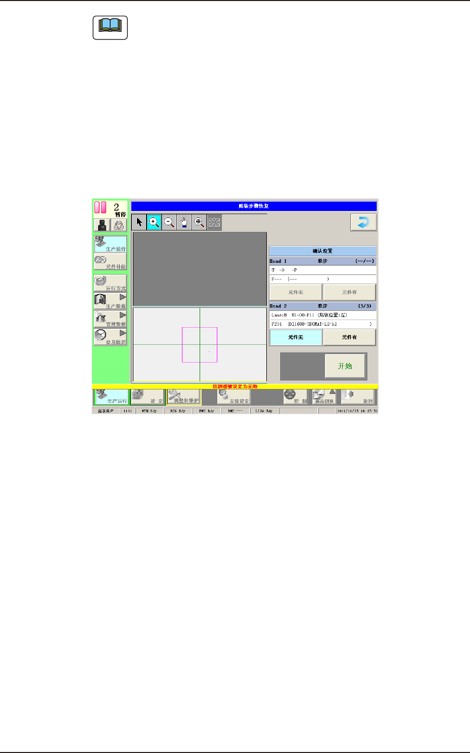 1OM-1752 3-50 (2) 按下 [ 贴装位置移动 ] 按钮。 ( 显示 “ 贴装位置 ” 界面。) F1C48 (3) 在线路板有元件时选择 [ 元件有 ] 按钮,在线路板没有元件时选择 [ 元 件无 ] 按钮。 ( 按下 [ 元件有 ] 按钮或 [ 元件无 ] 按钮, [ 下阶段 ] 按钮变为有效。 按下 [ 下 阶段 ] 按钮,进入下一个步骤。) F1C49 1304-001 5.4 用贴装恢复重新开始生产