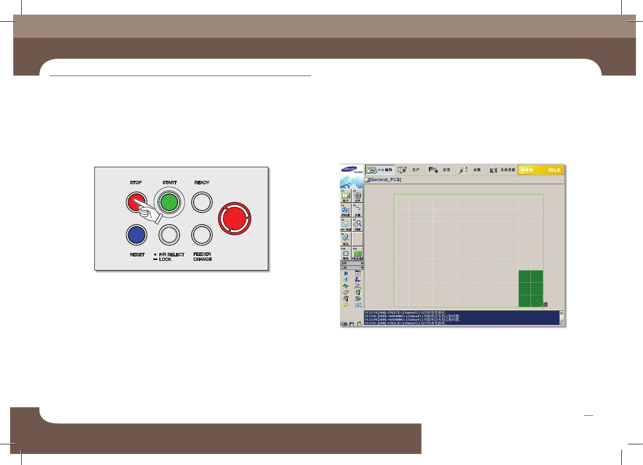 紧急停止后想要重新进行生产时,操作者必须确认紧急停止时是否有部件掉落到 PCB上,如有掉落部件时请清除。