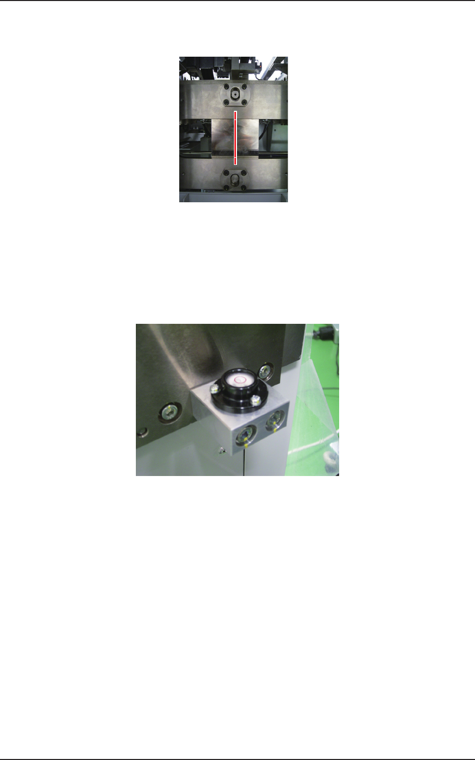 エレベータユニット背面側に付いている水準器 2 か所の気泡が中