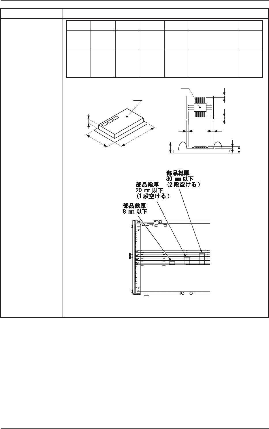 OM-1753 1-3 1303-001 項 目 内 容 注 : (a) t1 または t2 が 8 mm を超え、14 mm 以下の高さの部品を取 扱う場合には、上段パレットを空けてください 。 (b) 表中 ( 注b ) は、部品のモールド外形が“9 × 9 mm”以下 の場合 “Max. 0.5 mm” となります。 (c) 表中 ( 注c ) は、部品およびトレイ固定マグネットの質量 を含みます。 (d) 機械的特性により取扱え…