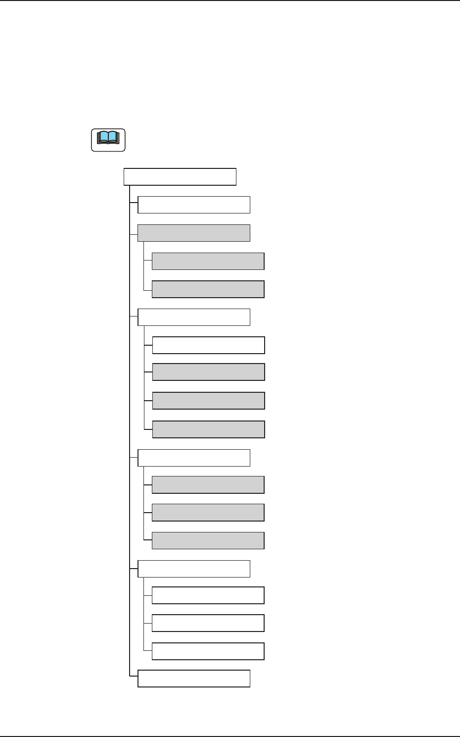 灰色で塗りつぶされている部分は、多段トレイフィーダに関連する項目