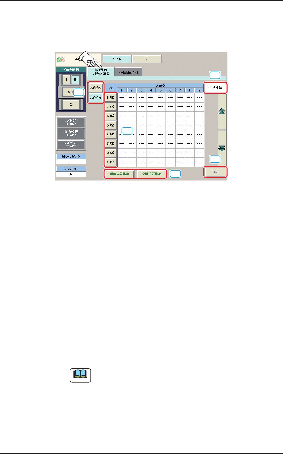 [ 補給位置移動 ] : 現在選択しているマガジンを部品補給位置へ移動