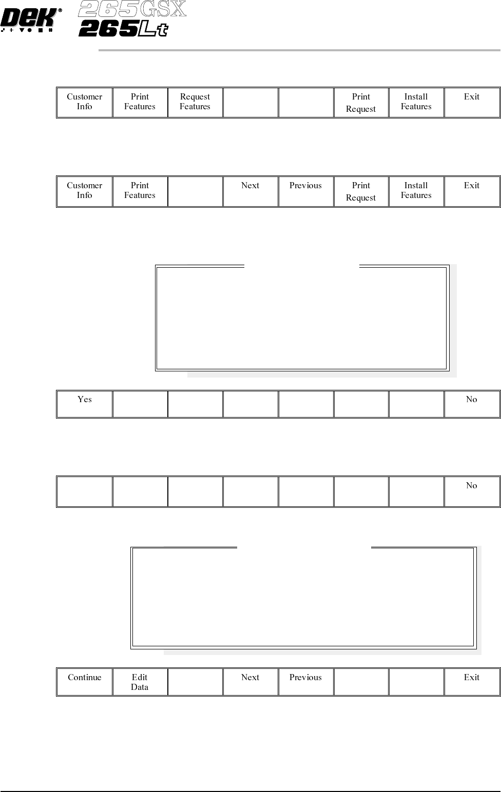 11. Select Next and Previous (F4 - F5) to highlight the feature to be requested. Next Previous 12. Select Request Features (F3). Request Features The following window and menu bar is displayed: 13. Select Yes (F1). Yes T…