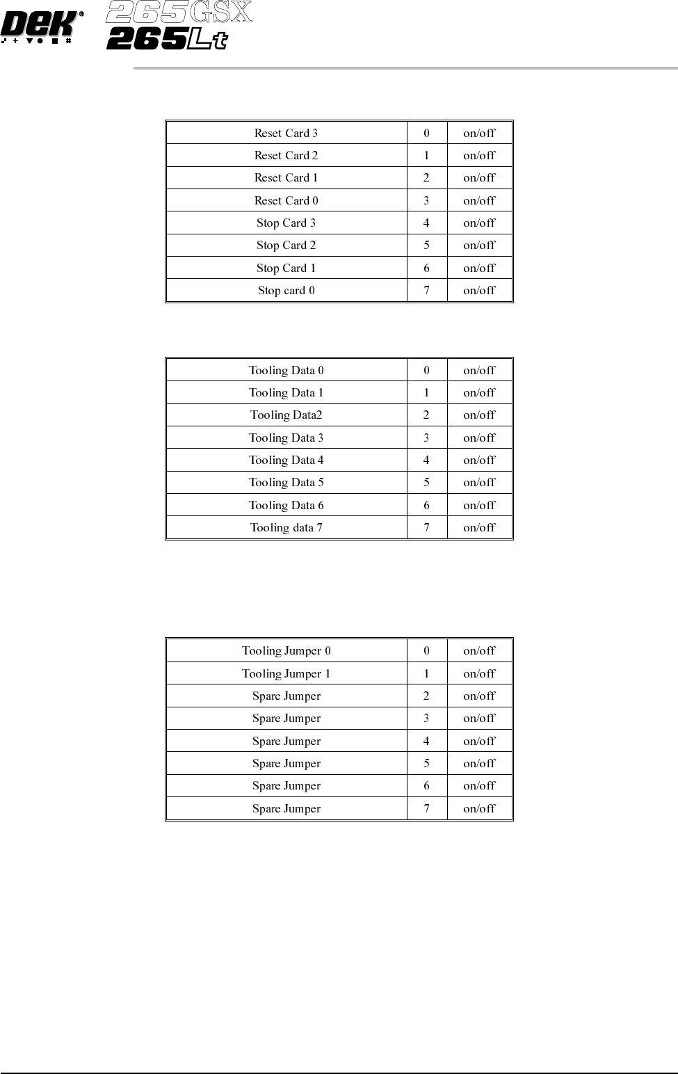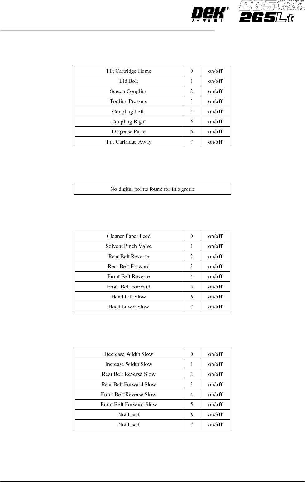 Outputs - PCIB40#2 Group 2 (Cards X1 - X4, Y1 Electronic Enclosure) Outputs - PCIB40#2 Group 3 If FPA is fitted PCIB40#2 Group 3 is reconfigured from outputs to inputs as follows: Inputs - PCIB40#2 Group 3 Tooling Jumper…