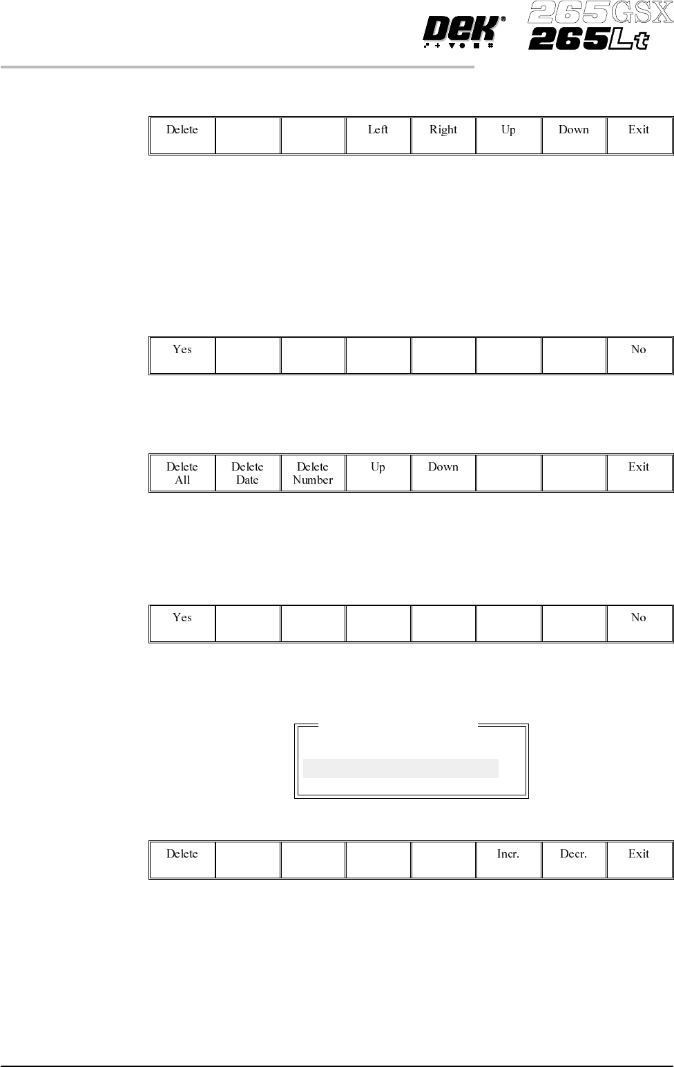 On pressing the Delete Date key the following window is displayed: