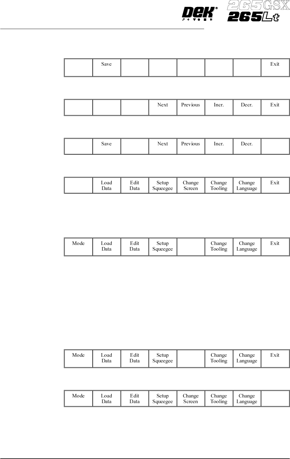 5. Using the Next, Previous, Incr. and Decr. keys, edit the current process parameters for the new product. Next Previous Incr. Decr. 6. Press Save . Save 7. When the message ‘Board Data File Saved’ is displayed, press E…