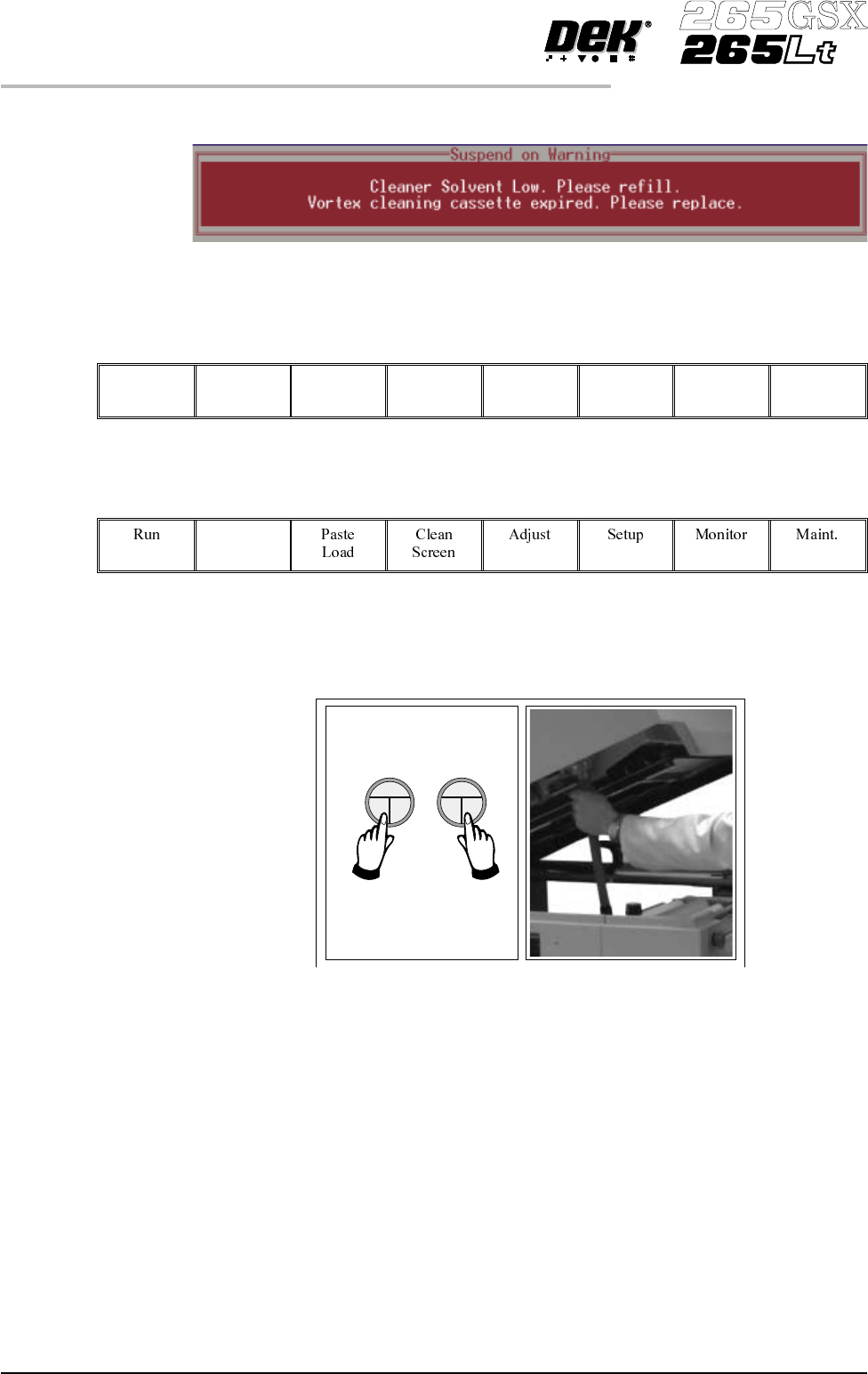 Solvent Replenishment 1. Remove the solvent tank cap from the solvent tank. Software Version 6 User Manual 9.41 CONSUMABLE REPLENISHMENTS VORTEX UNDERSCREEN CLEANER W ARNING PROTECTIVE CLOTHING . APPROVED PROTECTIVE CLOT…