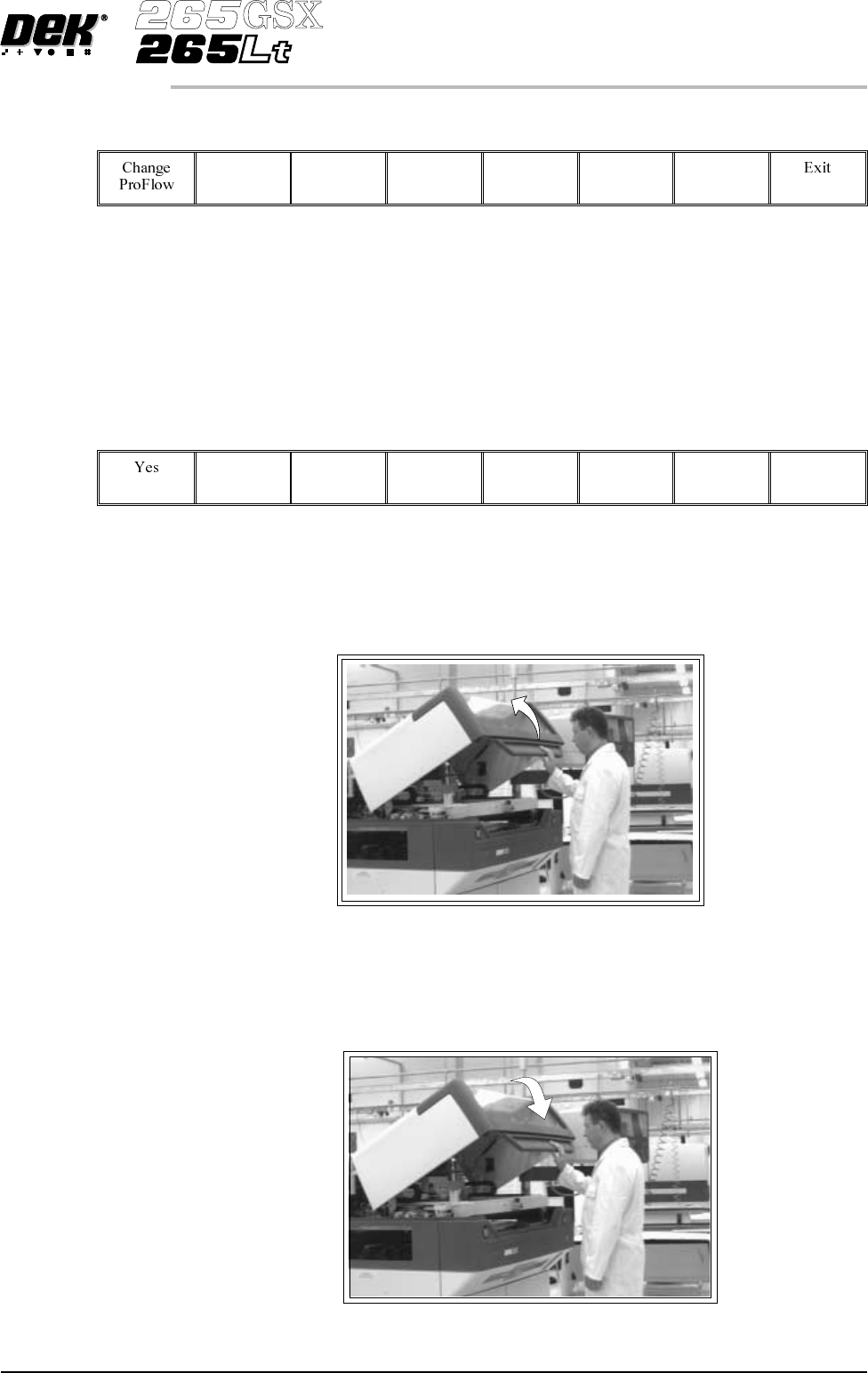 10. Press the System button. 11. Select Exit (F8). Exit 12. Select Yes (F1). Yes The message ‘The ProFlow unit will be placed in the REAR envelope’ is displayed. 13. If the ProFlow unit is required to be placed in anothe…