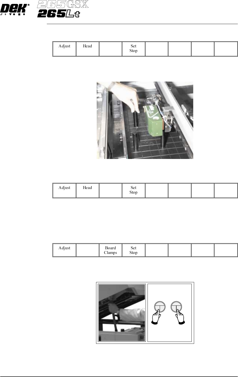 4. Select Board Clamps (F3), to open the clamps. Board Clamps 5. Slide a board along the rails to abut the board stop. 6. Select Board Clamps (F3), to close the clamps. Board Clamps 7. Using the board as a reference, pos…