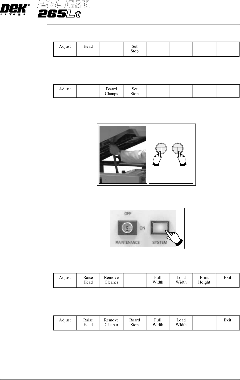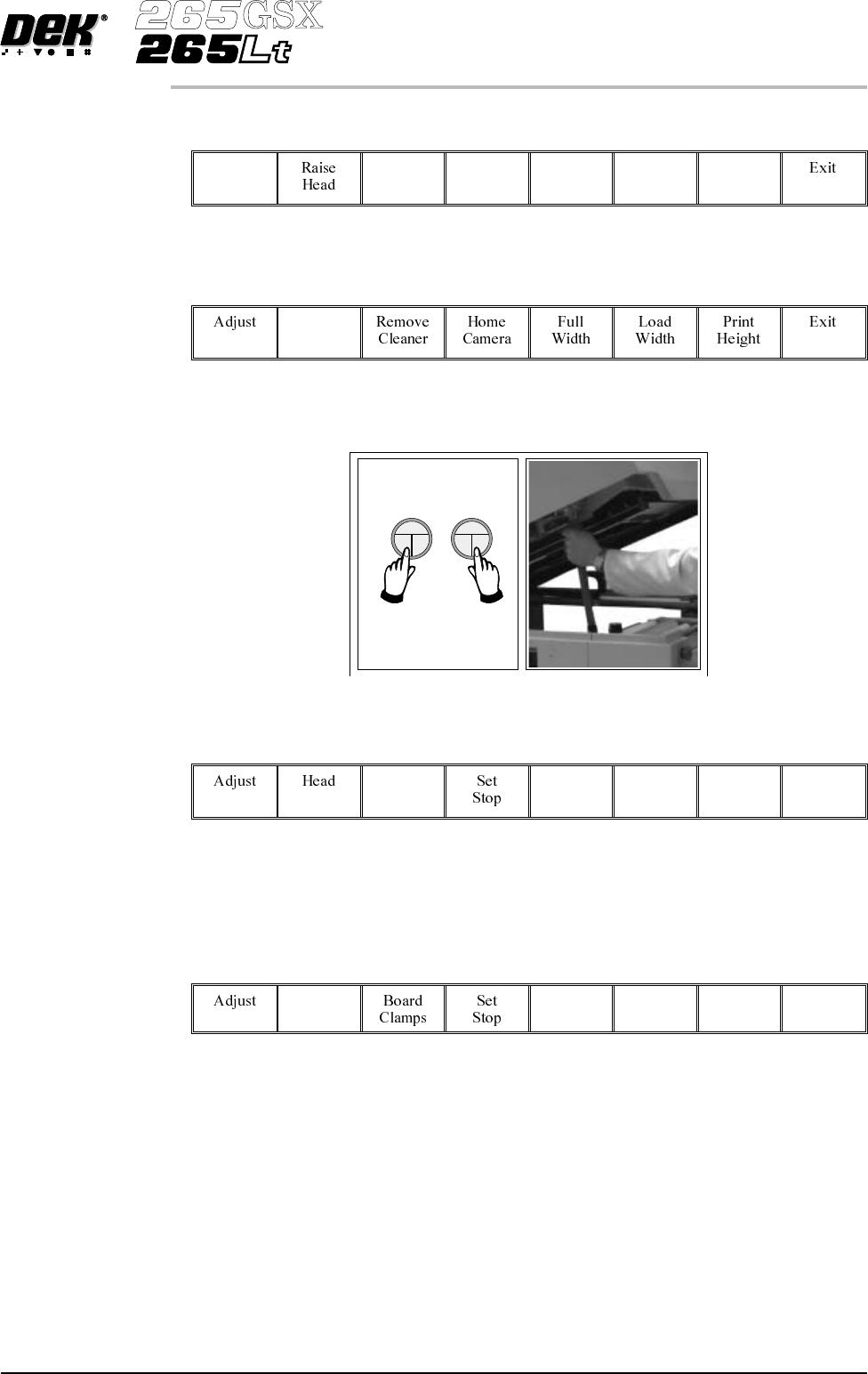 42. Select Raise Head (F2). Raise Head 43. Raise the printhead using two button control. Fit the head prop. 44. Check that the setup of the tooling is adequate for the board, adjust as necessary. 45. Select Head (F2). He…