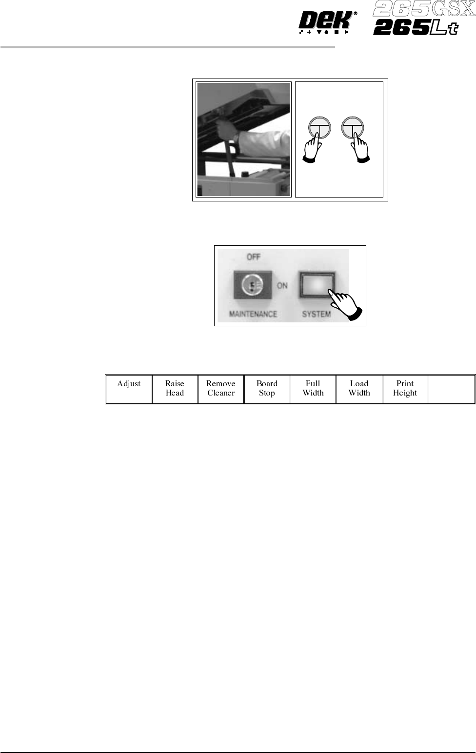 54. Remove the head prop. Lower the printhead using two button control. 55. Press the System button. 56. Select Exit (F8). Exit 57. Go to Stage 7. 1.70 User Manual Software Version 6 MACHINE PROGRAMMING STAGE 6F