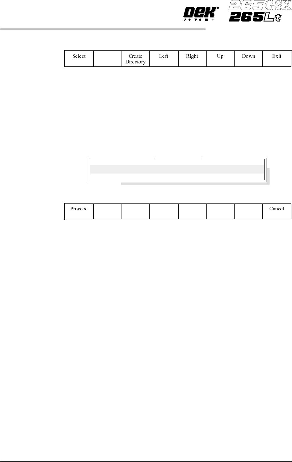 The menu bar changes to the following: The message ‘Select a directory to become the current location for Process Program files.’ is displayed in the message bar. Use the Up and Down keys to scroll up and down the highli…