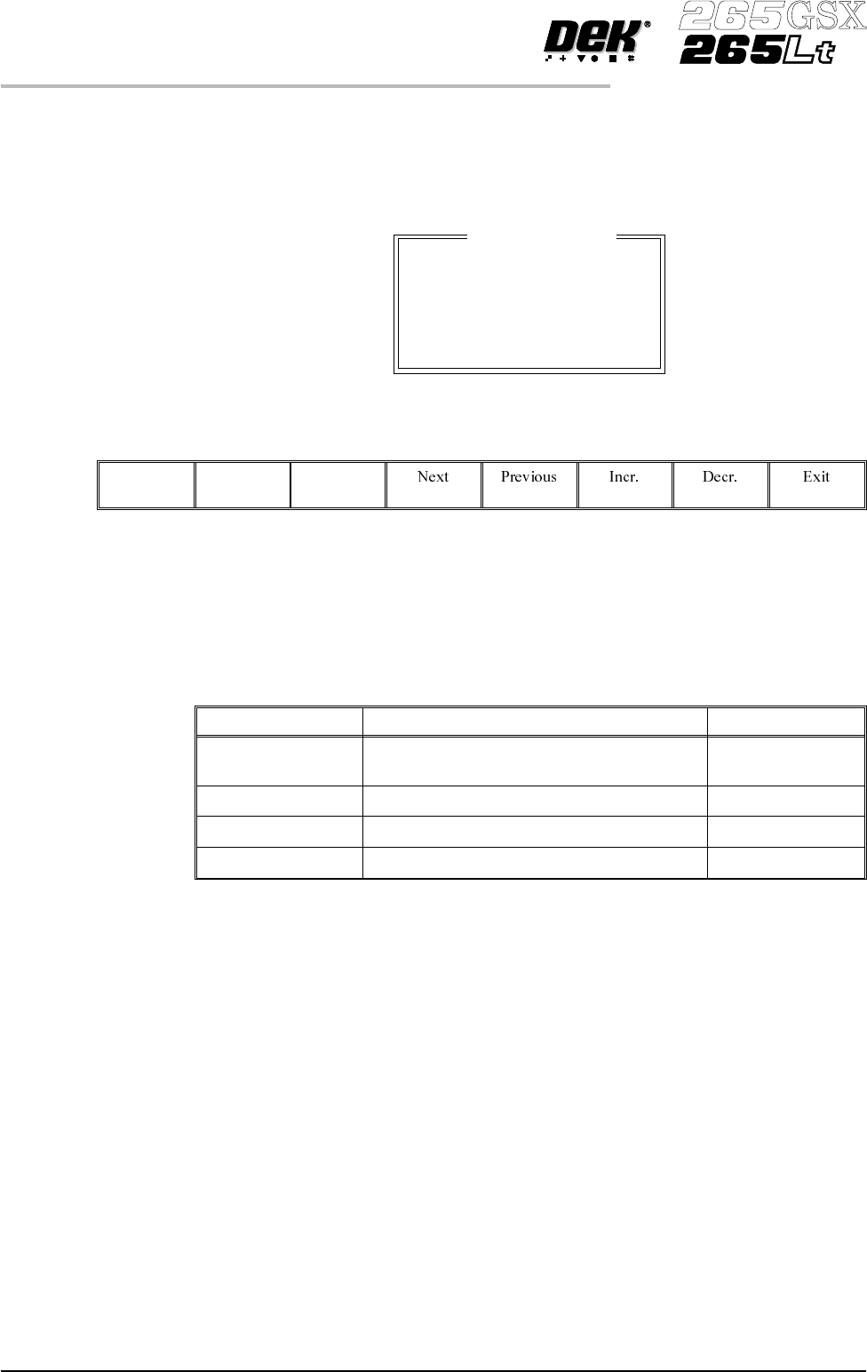 The Next and Previous keys move the cursor between the parameters.