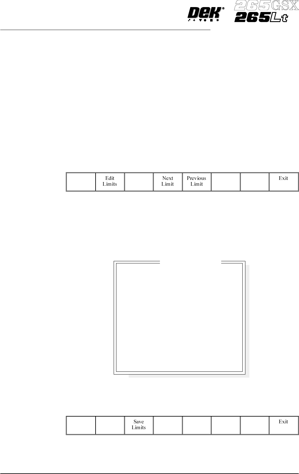 4. Select Save Limits . The message ‘Saving Fiducial Data - Please Wait Board data file saved’ is displayed. Save Limits 5. Select Exit . Exit 6. Select Edit Limits . Edit Limits 7. Go to Step 3 of Edit Limits (below). E…