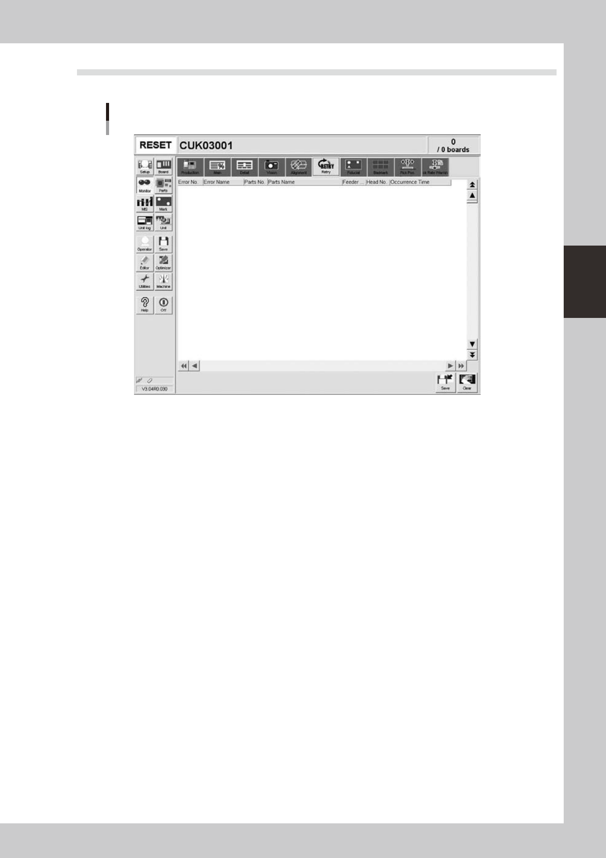 3-16 3 Starting and ending pr oduction 3.5 Alignment T he [Alignment] tab screen shows the offset amount of each head calculated from the recognition results obtained during automatic operation, as well as error numbers.…