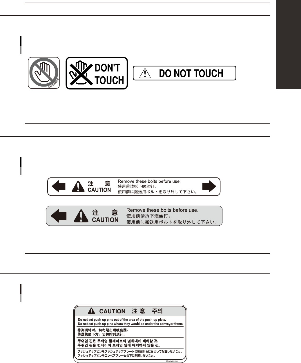 xvi Safety instructions n Caution instruction c Looking directly into the laser beam may cause loss of eyesight. n Applicable machines IT option barcode reader Possible loss of eyesight 91103-LC-00 n Caution inst…