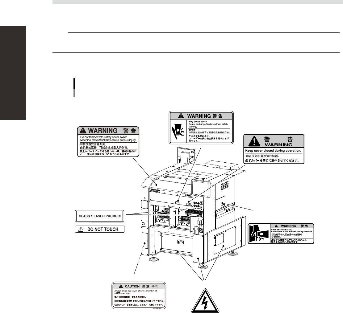 Basically, labels are attached to the positions shown below, although they may differ slightly depending on the