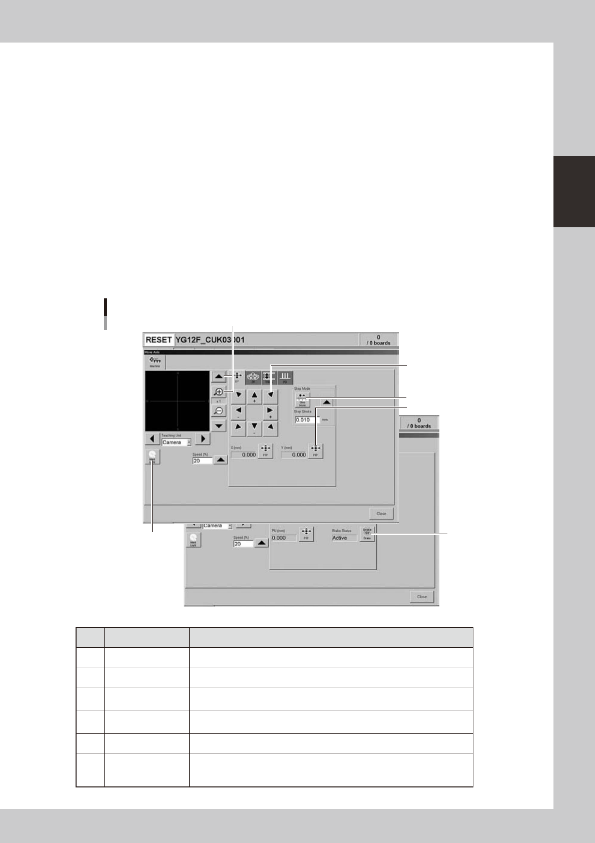 5 Arrow Use these buttons to move the selected axis in the desired direction.