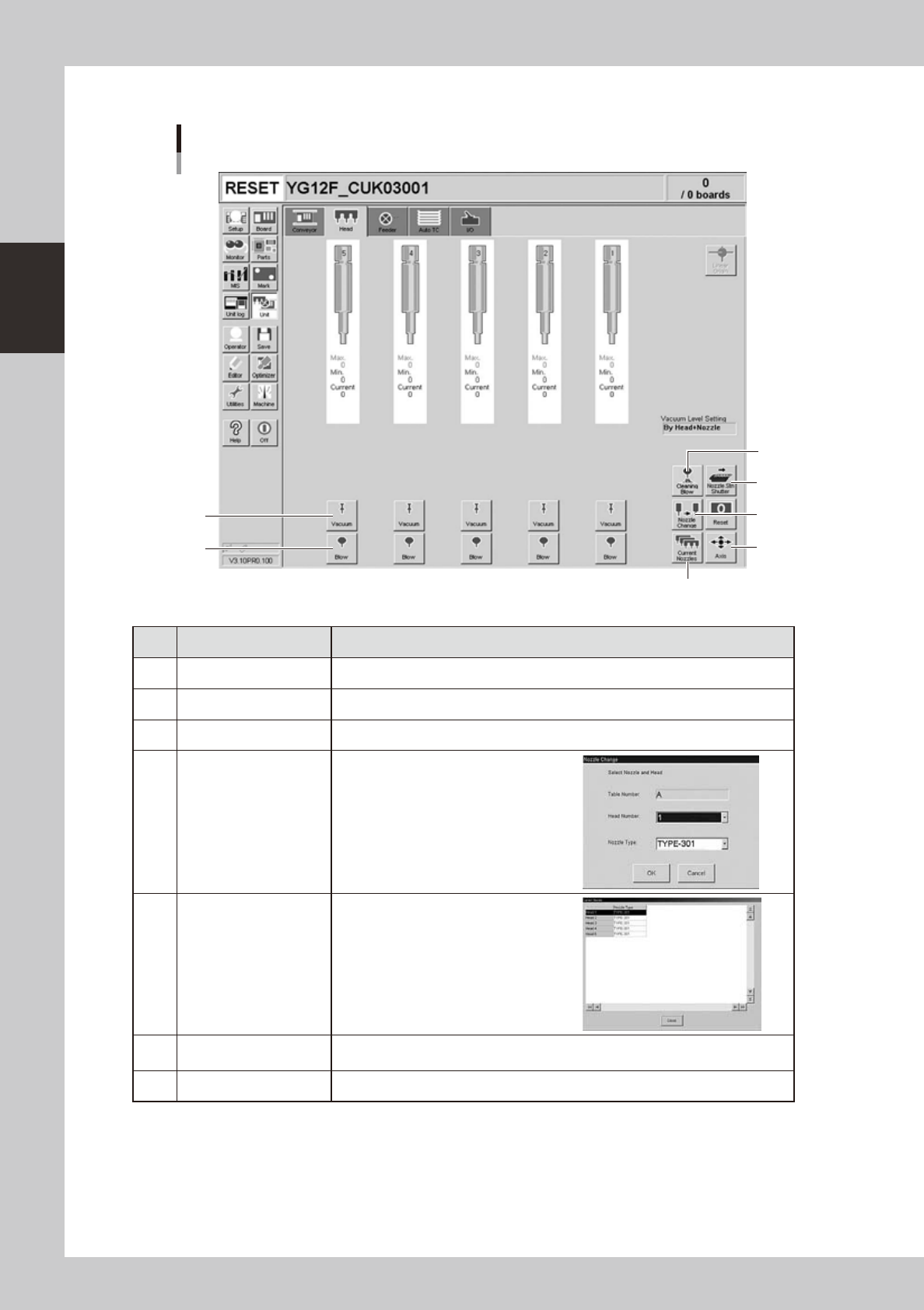 1 Vacuum Turns the vacuum of each head on or off.